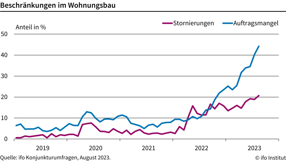 Die aktuelle Immobilienkrise zeigt sich in vielen Facetten. 😱 Rückläufige Baugenehmigungen und Baufinanzierungen, Pleiten von Projektentwicklern aufgrund zu hoher Baukosten und Bauzinsen und Stornierungen am Wohnungsbau. Laut ifo-Institut berichteten im August 20,7 % der Firmen von abgesagten Projekten, nach 18,9 % im Vormonat. 😰