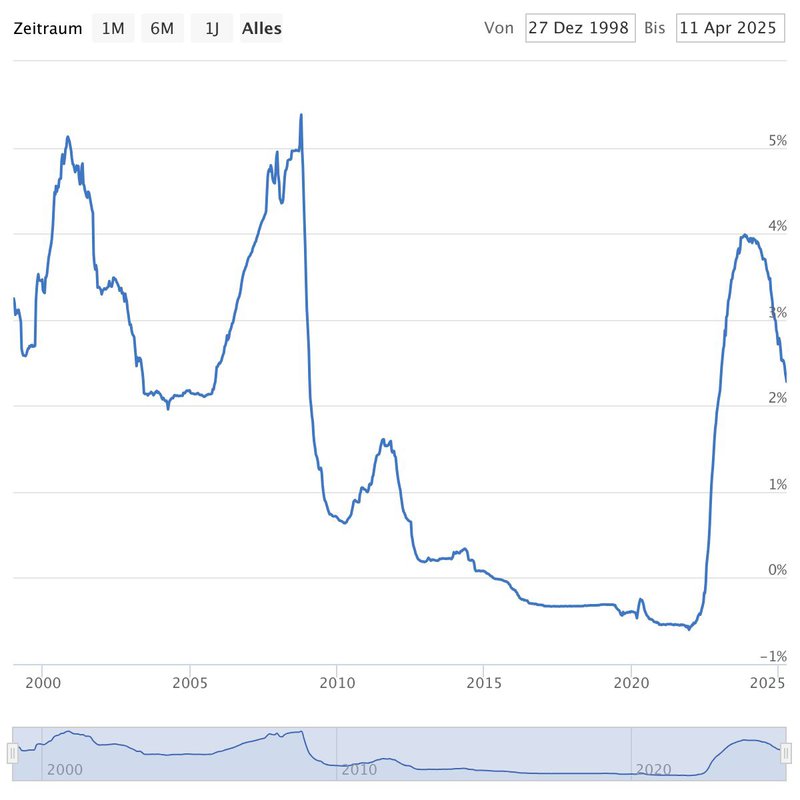 Damit würde der wichtige Einlagesatz auf 2,25 % 📉 fallen.