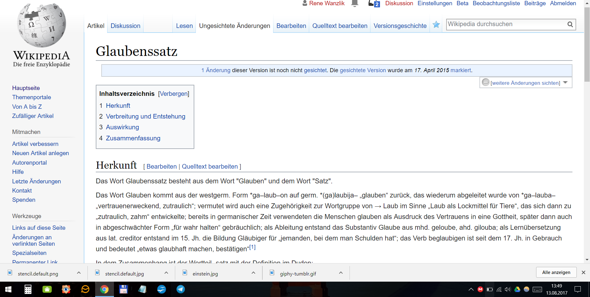 Was gibt mir WIKIPEDIA nun zurück, wenn ich nach "Glaubenssatz" frage: