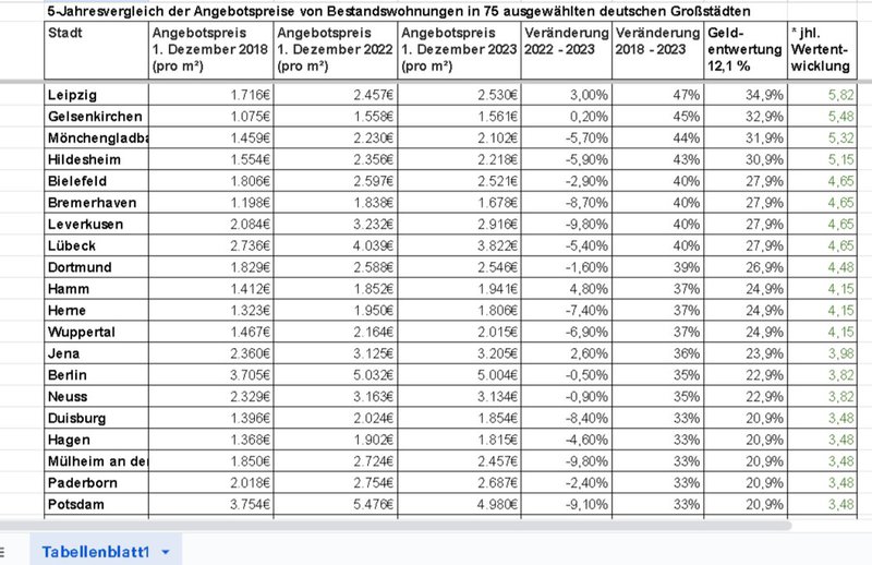 Laut Statista sind die Preise seit 2018 um schlappe 12,1 Prozent gestiegen. Also, liebe Leute bei immowelt, bei allem Respekt, aber wo sind denn die restlichen Prozente hin? Sind die etwa in der Inflations-Schlucht verschwunden? 🕳️💨