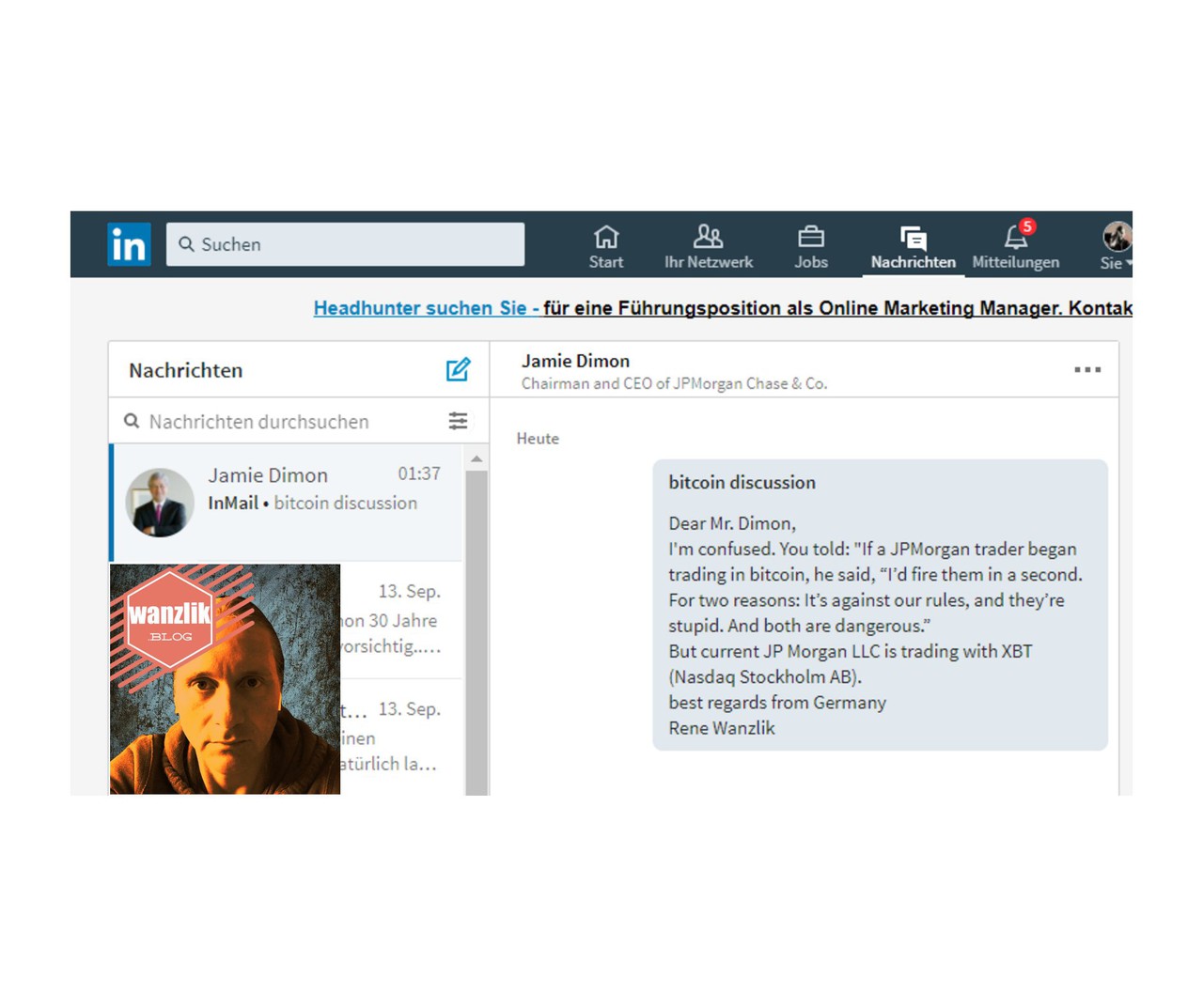 Ich schreibe Herrn Jamie Dimon an und frage ihn, was er von seinem Gesagten umsetzt, oder? Eine Information an ihn ist nun obligatorisch. Ich bin gespannt, ob er antwortet und halte Euch auf dem Laufenden