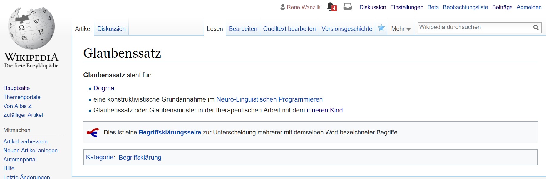 Nachdem ich in meinem letzten Blog angekündigt habe eine Definition in WIKIPEDIA über "Glaubenssatz" zu schreiben, ist einiges passiert.